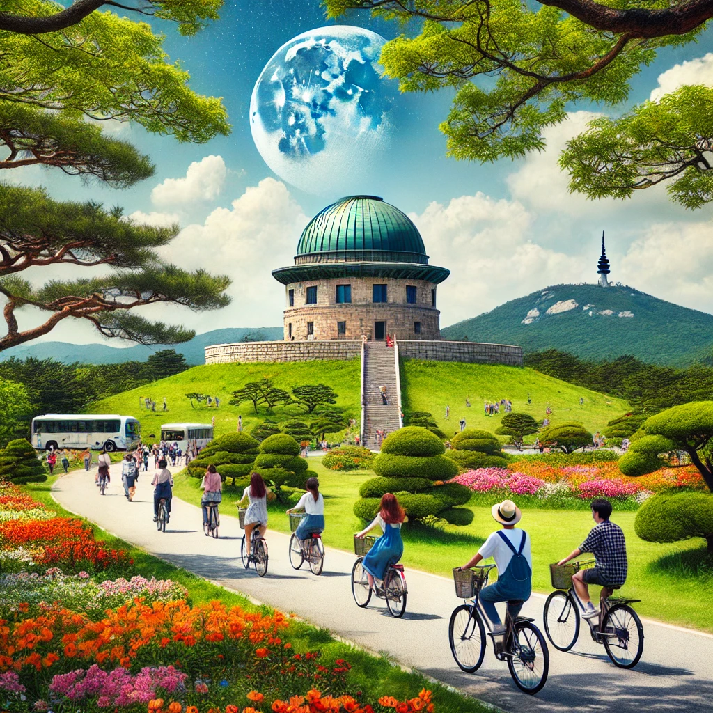 경주는 자전거 여행하기 좋은 도시! - **첨성대**: 현존하는 동양 최고의 천문대 - **동궁과 월지**: 밤이 되면 조명이 켜지며 환상적인 야경을 자랑 - **월정교**: 화려한 조명이 더해진 신라 시대의 목조 다리