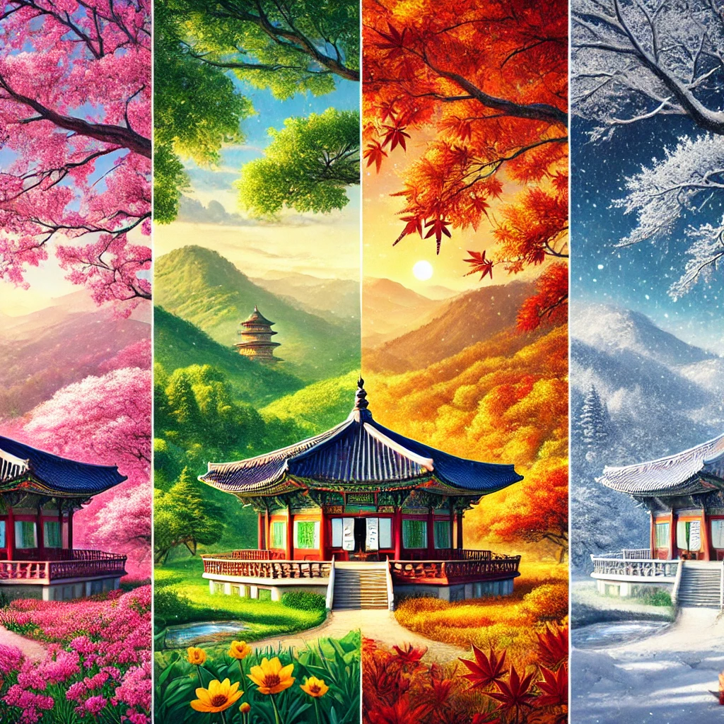 • 겨울: 눈 덮인 고즈넉한 사찰 풍경이 마치 한 폭의 동양화를 연상시킵니다.