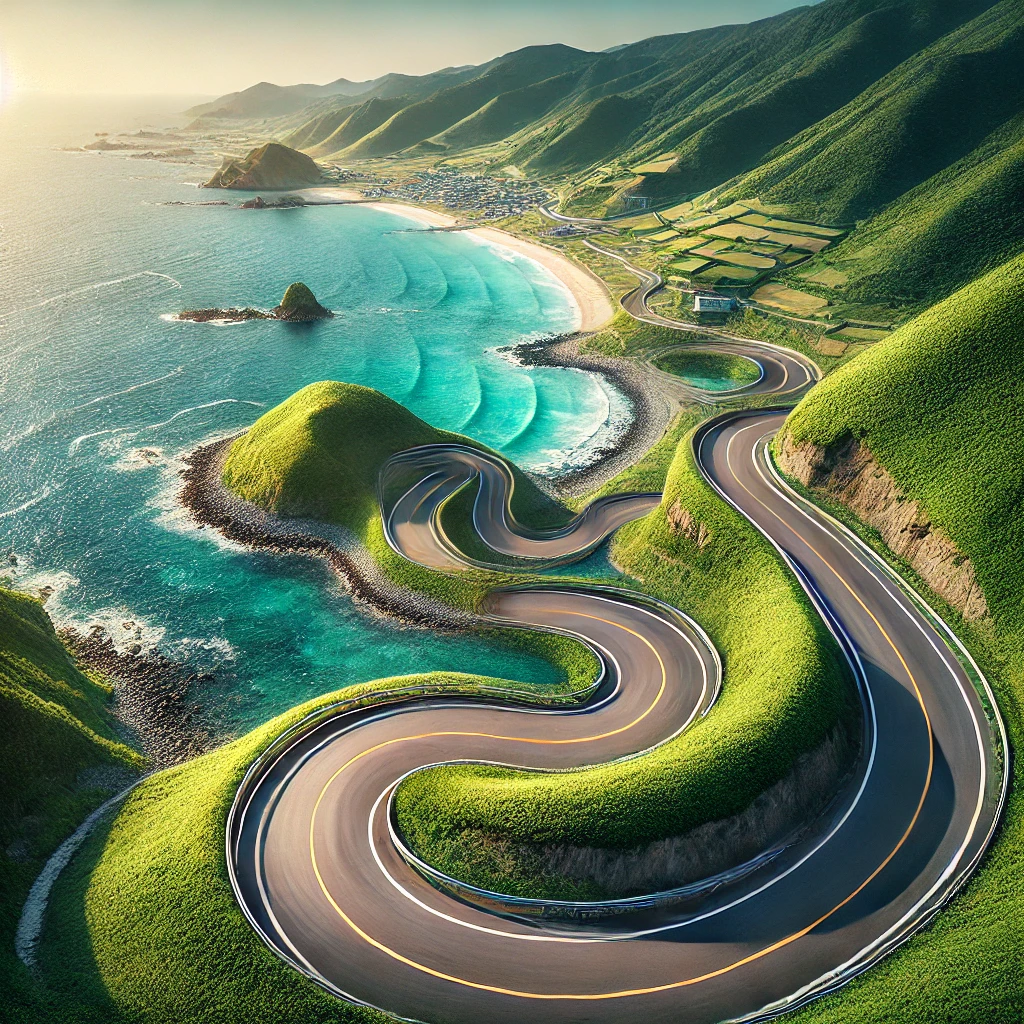 추가 설명: 해안선을 따라 굽이진 도로를 달리며, 한적한 어촌 마을과 푸른 바다가 만들어내는 평화로운 풍경을 만끽할 수 있습니다.