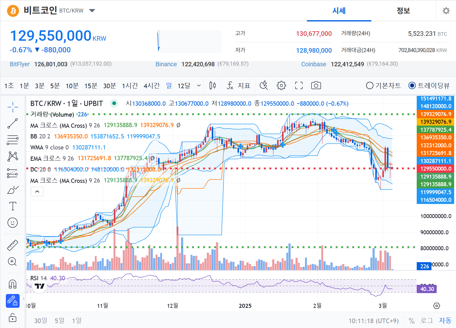 비트코인(BTC/KRW) 차트 분석: 시장 동향과 투자 전략(2025-3-5)