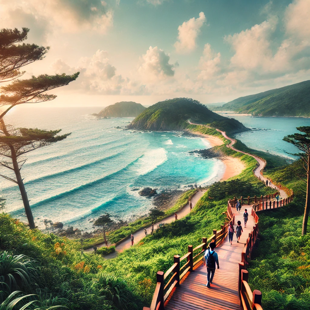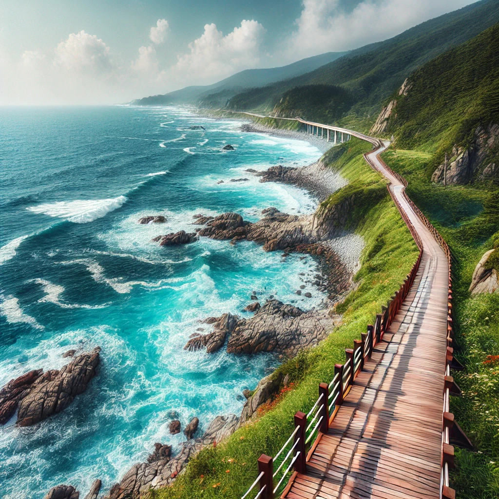특징: 영덕 블루로드는 동해의 푸른 바다와 함께 걸을 수 있는 대표적인 해안 트레킹 코스로, 바다와 산, 숲길을 아우르는 다양한 풍경을 감상할 수 있습니다.