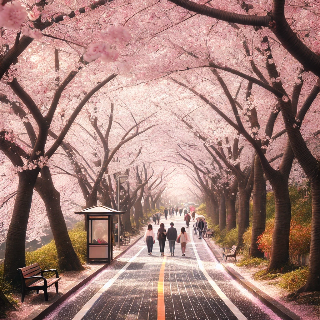 경험 공유: 도로 양옆으로 늘어선 벚나무들이 하늘을 뒤덮으며 마치 동화 속 한 장면 같은 풍경을 연출합니다. 벚꽃이 만개하면 온 길이 분홍빛으로 물들며 낭만적인 분위기를 자아냅니다.