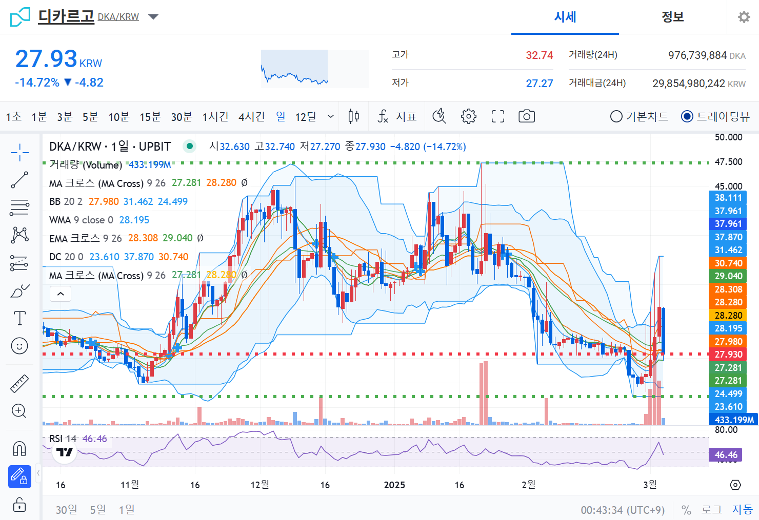 #DKA #디카르고 #암호화폐 #차트분석 #기술적분석 #볼린저밴드 #RSI #MACD #트레이딩전략 #업비트 #코인시장 #크립토